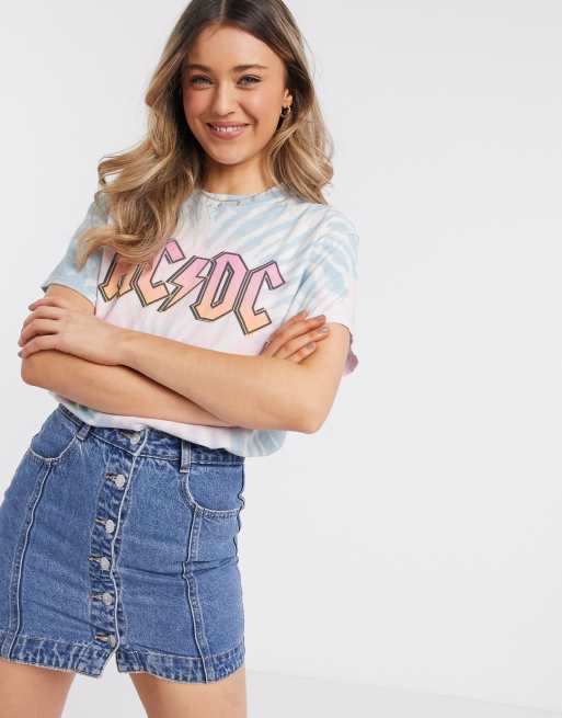 Daisy Street Plus Relaxed T Shirt With Acdc Graphic In Tie Dye Asos