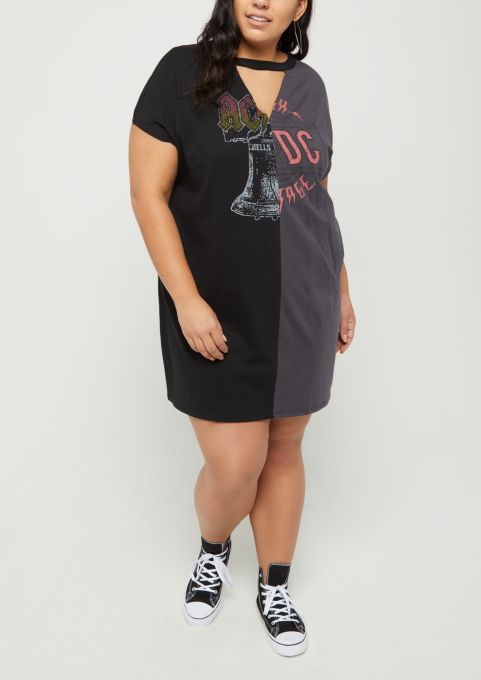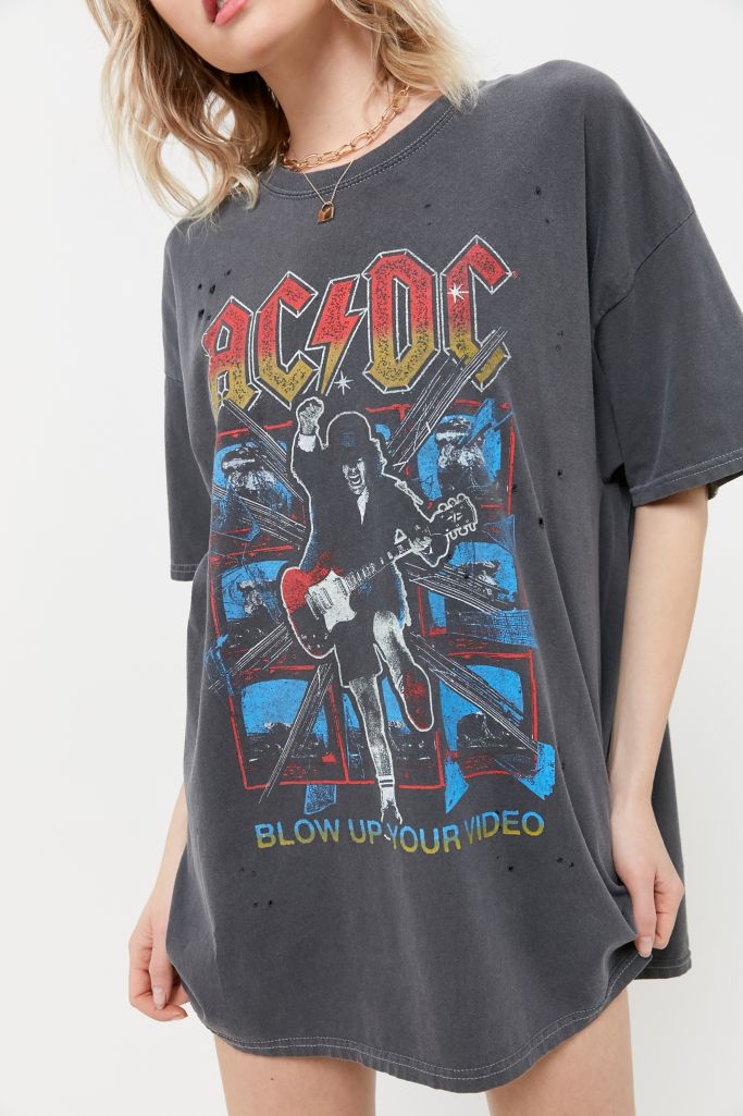 Ac Dc Distressed T Shirt Dress In 2020 Distressed T Shirt Dress T Shirt Dress Tshirt Outfits