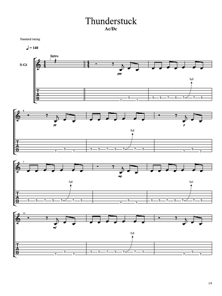 Thunderstruck By Ac Dc Easy Guitar Tab Guitar Instructor
