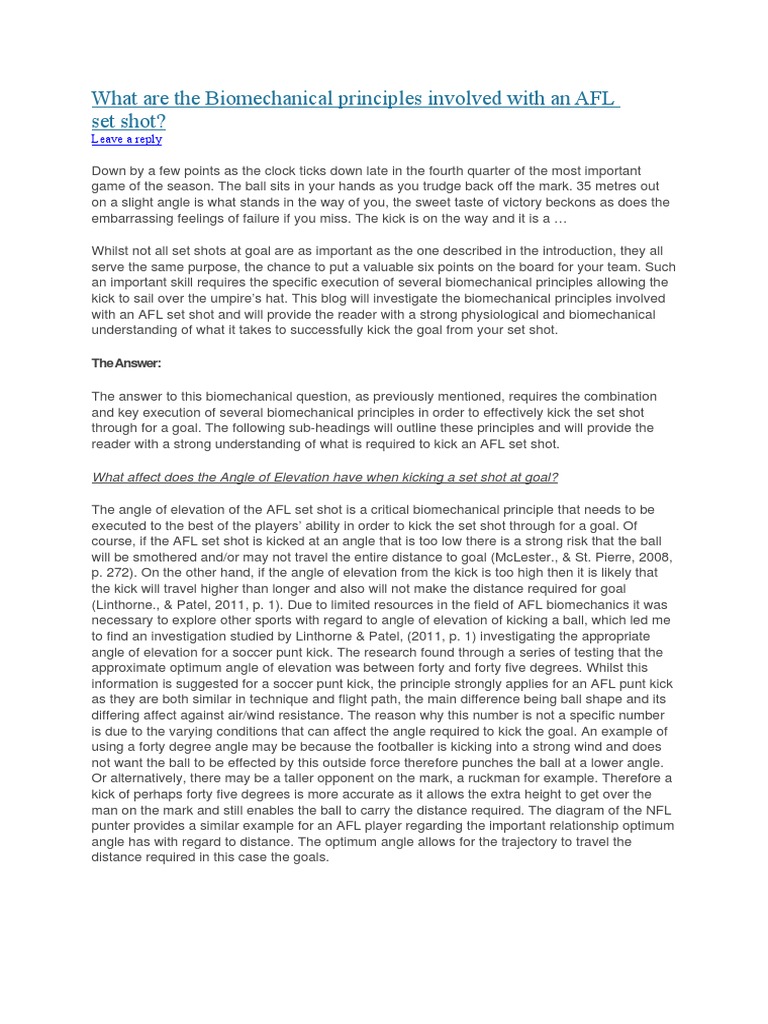 Biomechanics Involved In The Afl Drop Punt Tomlatchford11