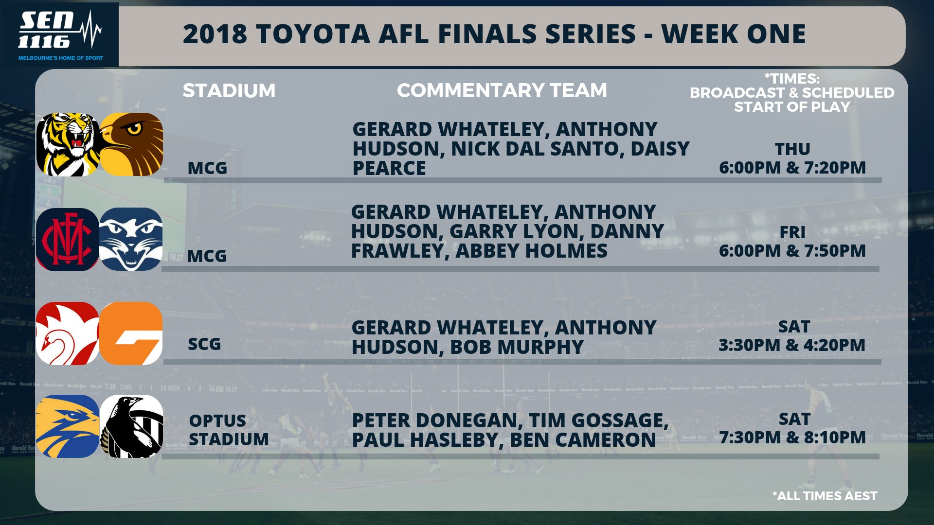 Who Plays Who In Weeks Two And Three Of The Finals