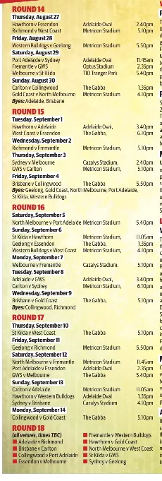 Pressreader The West Australian 2020 08 15 Afl Fixtures Round 14 18