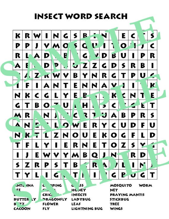 Insect Word Search Etsy