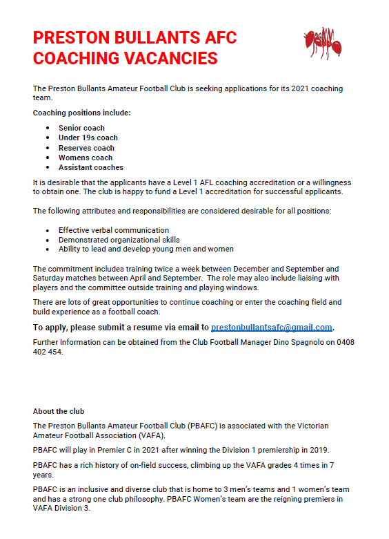 Calling All Coaches Applications For Sunbury Football Netball Club Inc Juniors Facebook