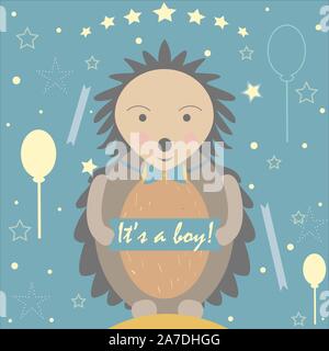 Newborn In Family Card With Baby Boy Afro And Giraffe Stuffed Animal Vector Illustration Design
