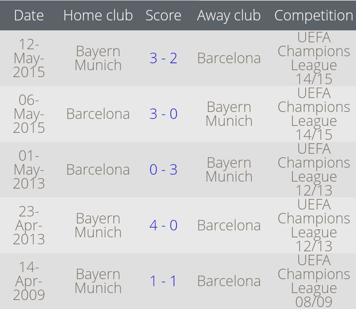Head to head information h2h. Bayern munich view events. Compare barcelona and bayern munich. Teams barcelona bayern munich played so far 10 matches.