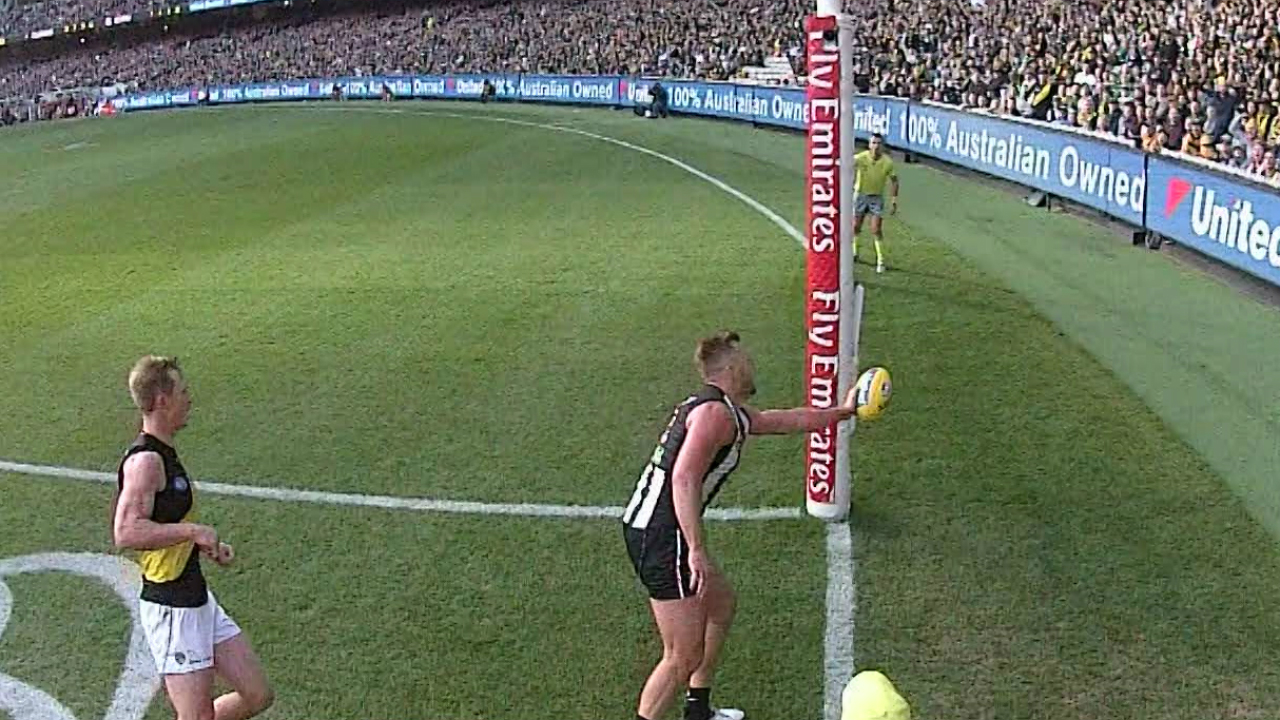 Richmond S Josh Caddy Disallowed A Goal As Collingwood S Lynden Dunn Gets Fingertip To Ball Sporting News Australia