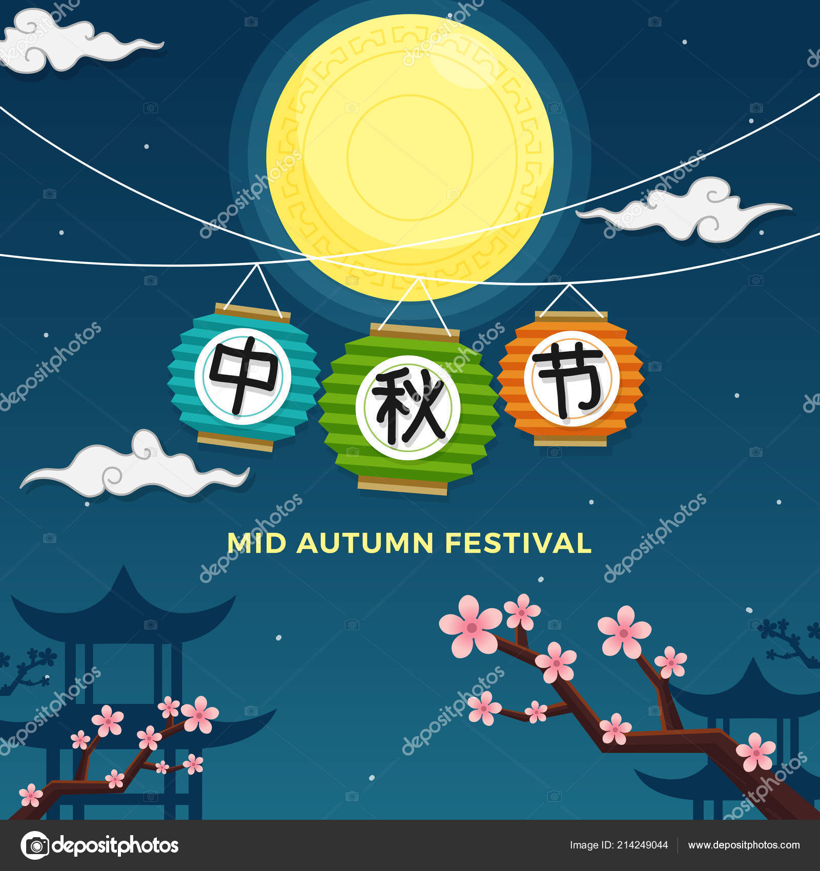 Mid Autumn Festival Greeting Card Chinese Wording Translation Mid Autumn Stock Vector C Alexandra Strekoza 285161578