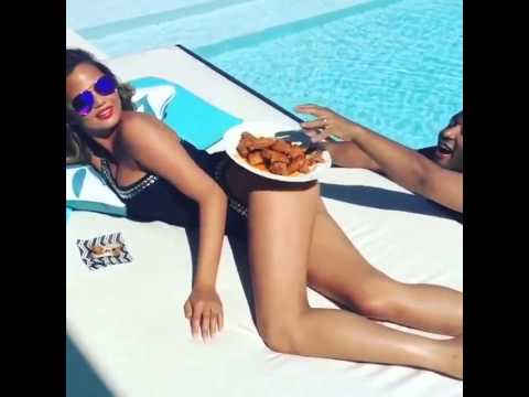 Watch Chrissy Teigen Balance A Plate Of Chicken Wings On Her Butt Youtube