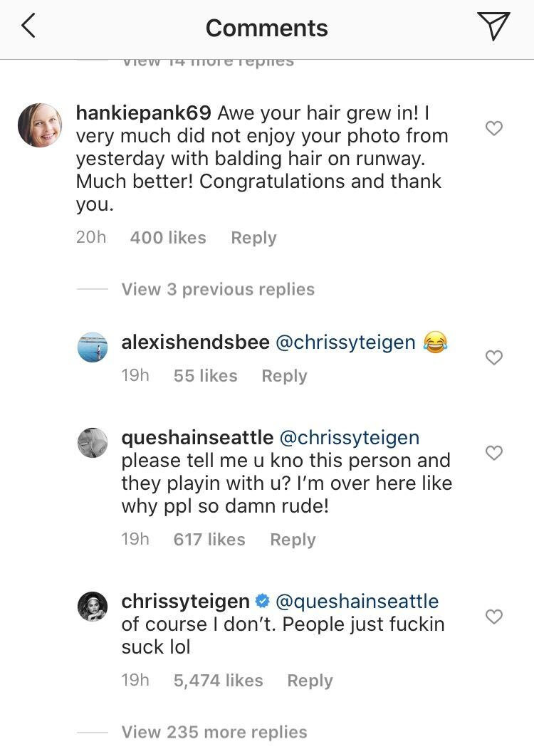 Chrissy Teigen Shuts Down Hater Who Claimed She Was Balding E Online