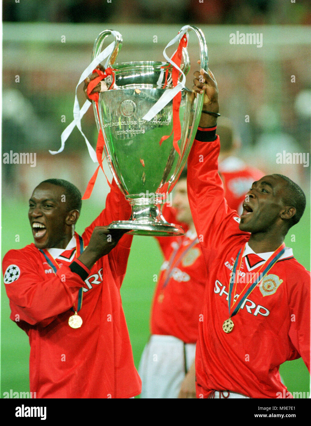 Manchester United S Dwight Yorke Left And Barcelona S Edgar Davids Stock Photo Alamy