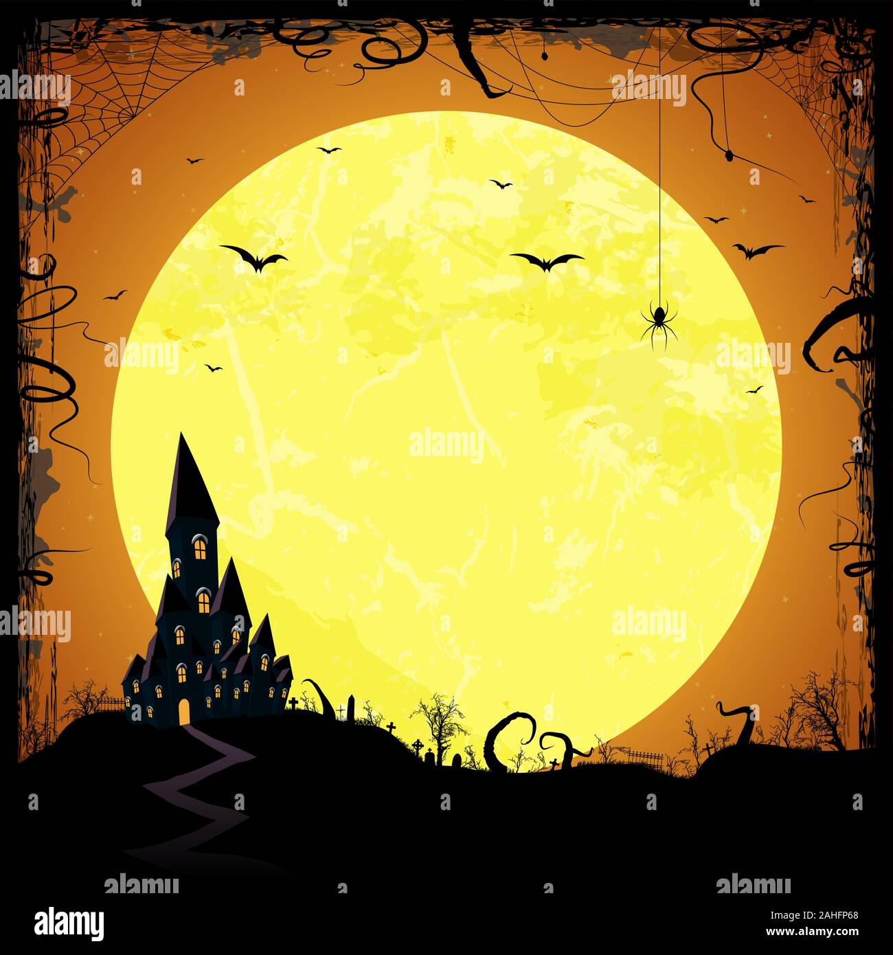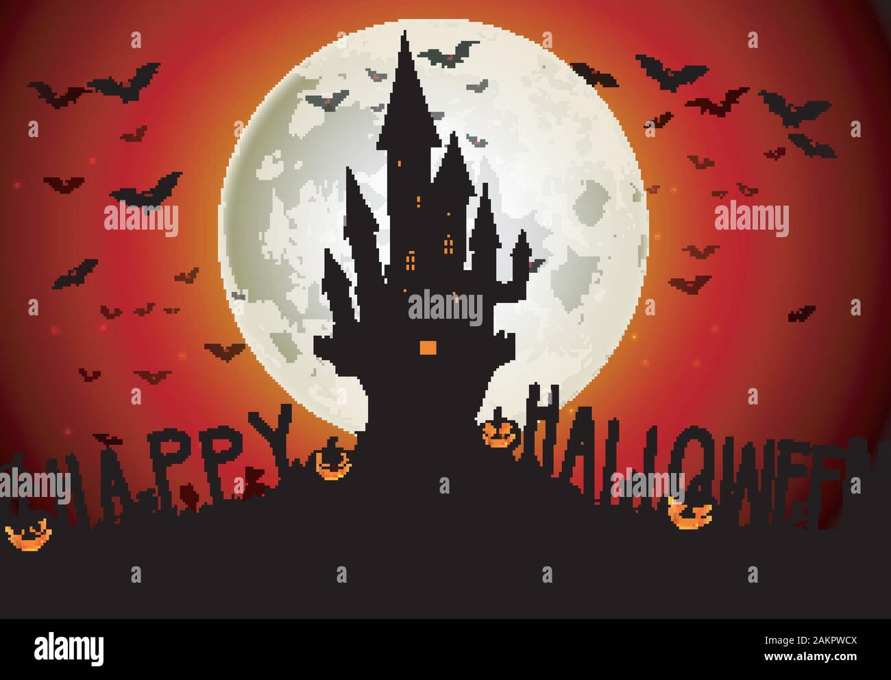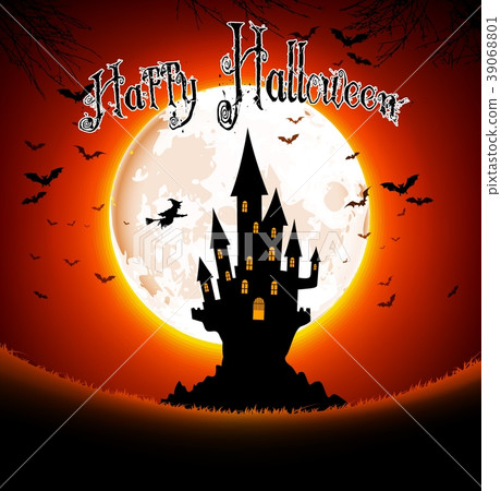 Halloween Background On Dark Night With Full Moon And Castle Stock Vector Image Art Alamy