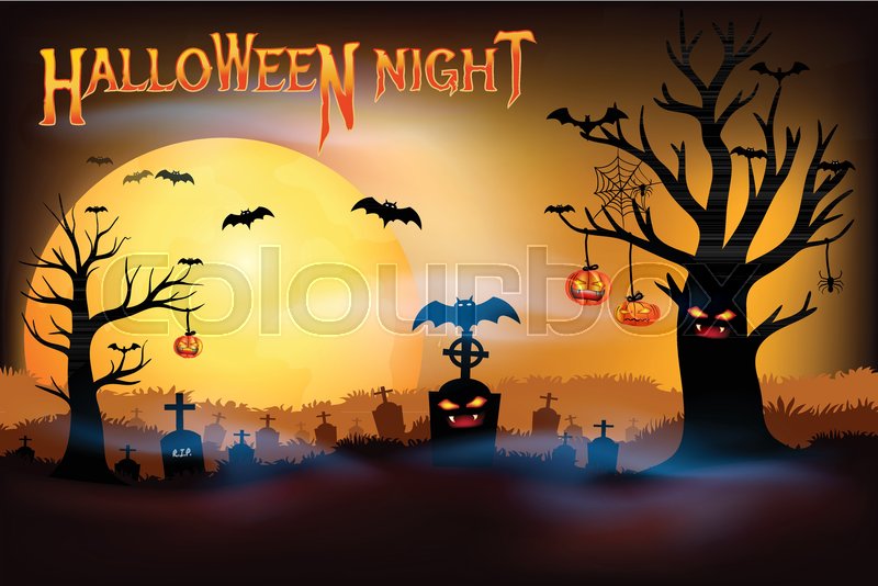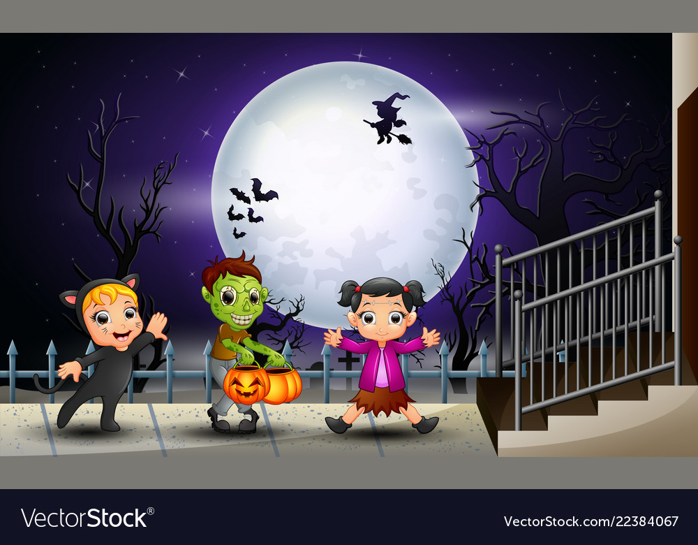 Happy Halloween Kids In Full Moon Background Graphic Vector Stock By Pixlr
