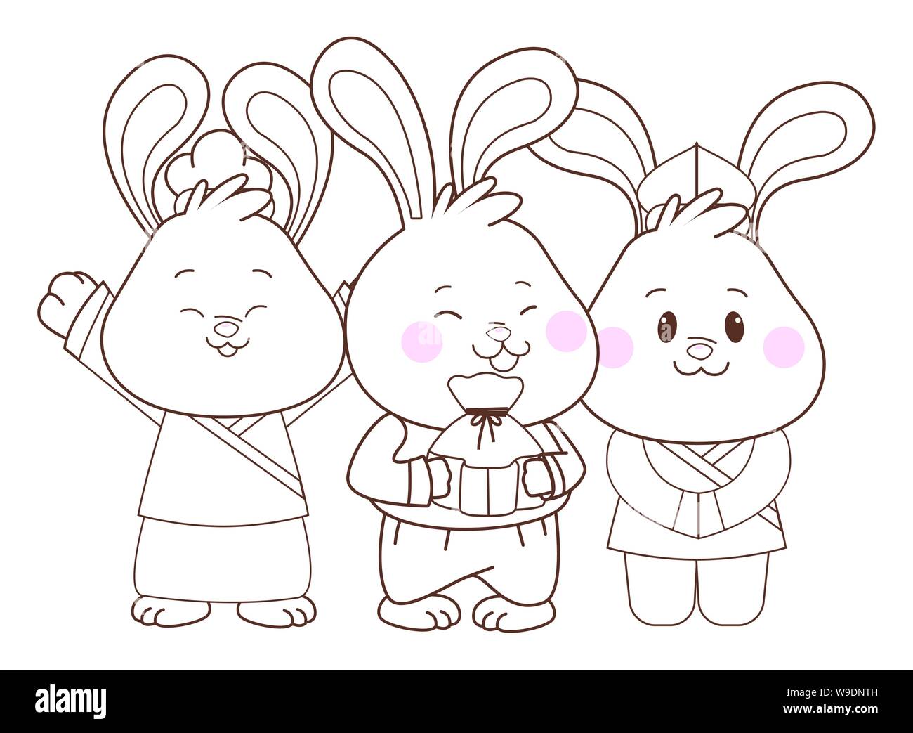 The Mid Autumn Festival The Moon Festival Couple Rabbit Vector Hand Drawn Stock Vector Illustration Of Moon Animal 90703332