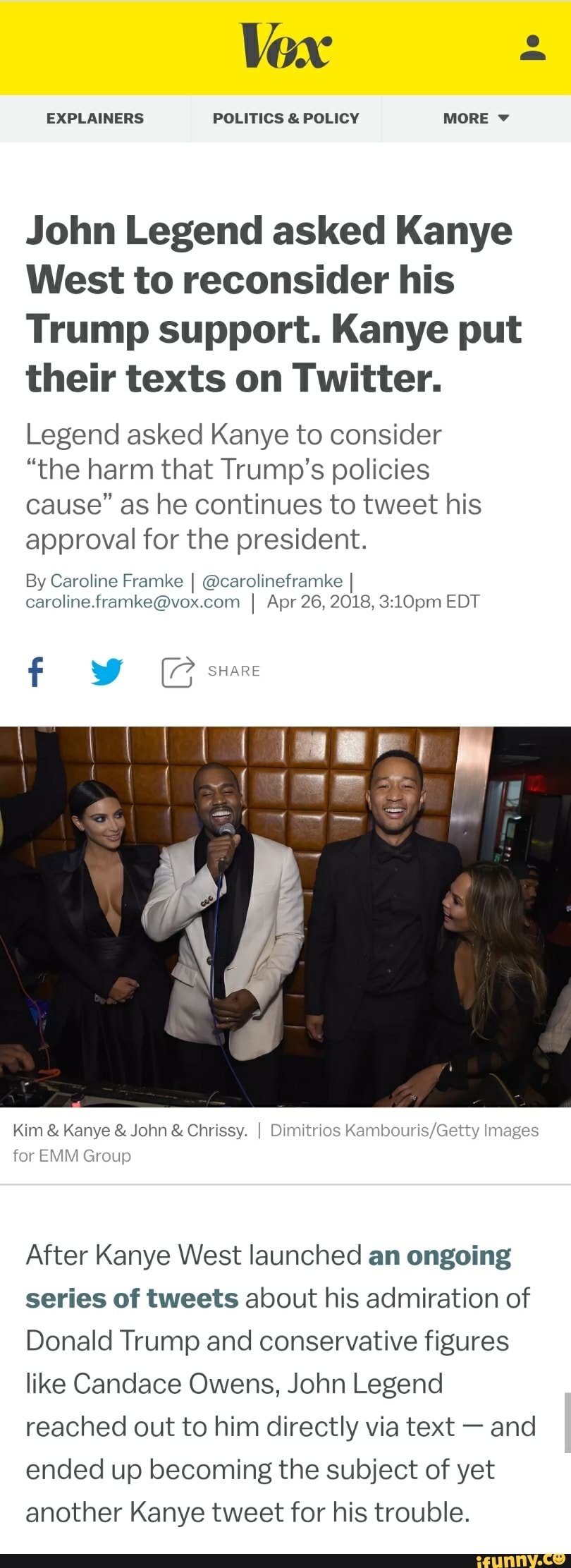 Why John Legend Texted Kanye West About His Trump Tweets Vox