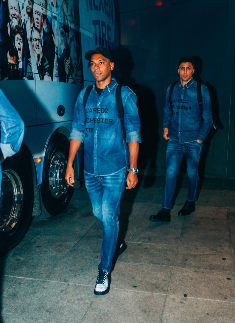 Manchester City Players Rock Double Denim As They Jet Off To Madrid Manchester Evening News