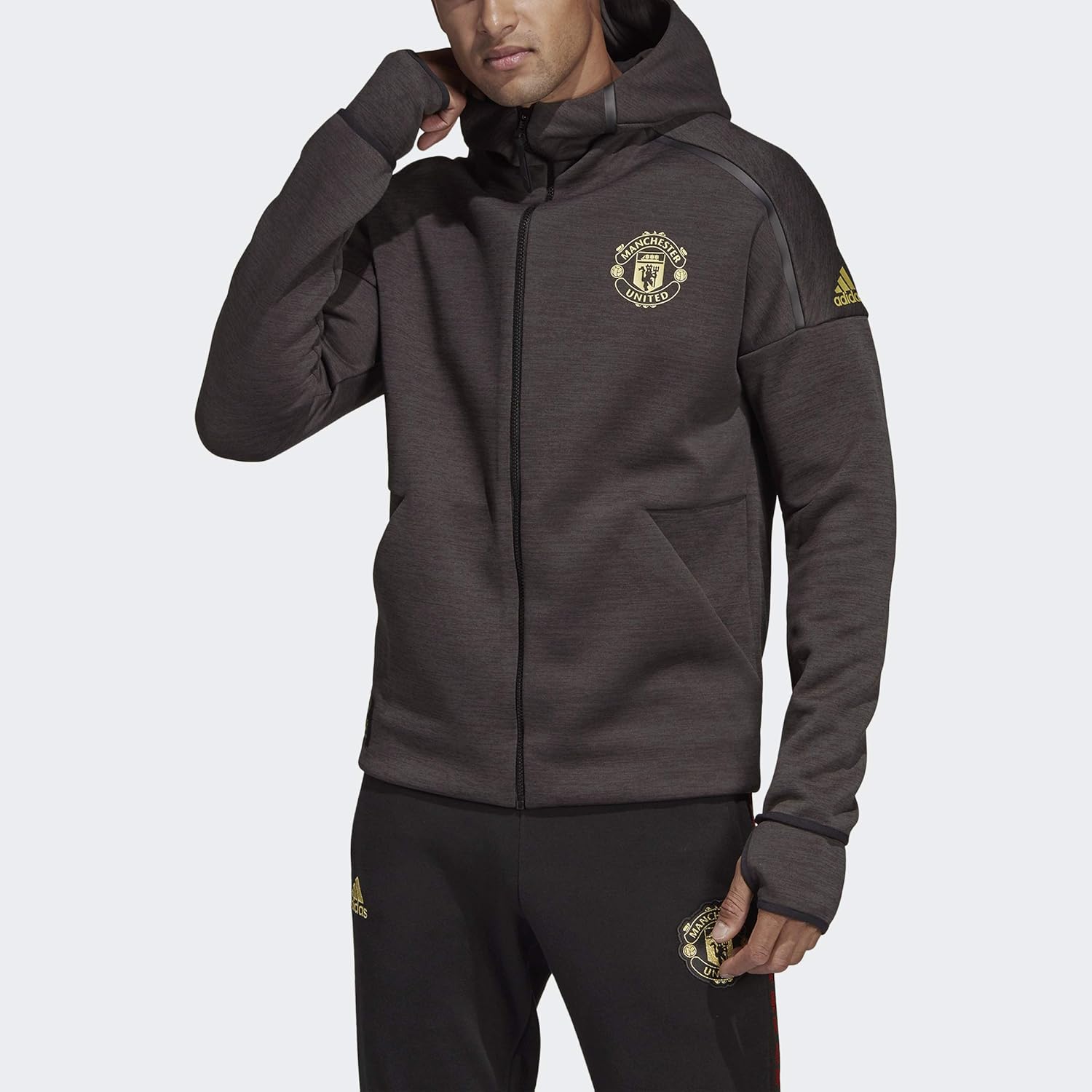 2019 20 Men Manchester United Black Soccer Jacket With Hoodies Football Kits
