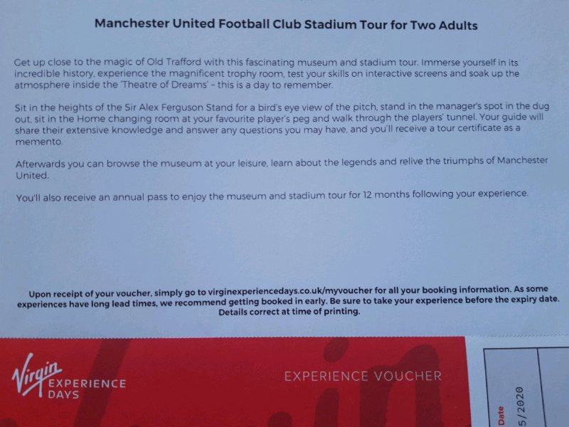 Manchester United Old Trafford Stadium Tour For Two Red Letter Days