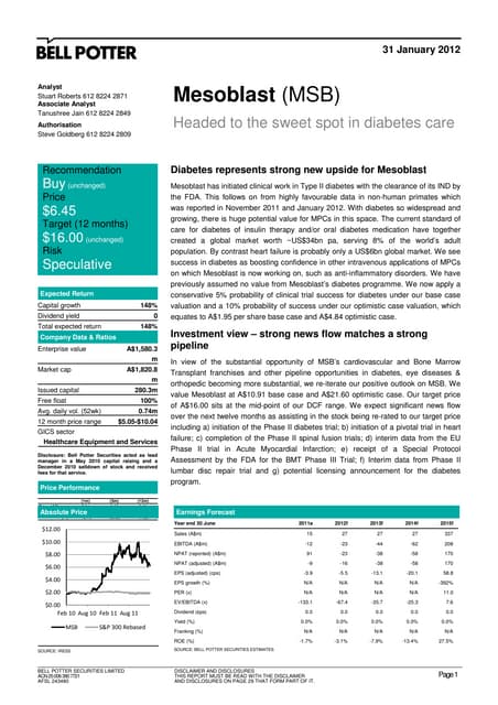Bell Potter Securities Report On Mesoblast 1 31 2012