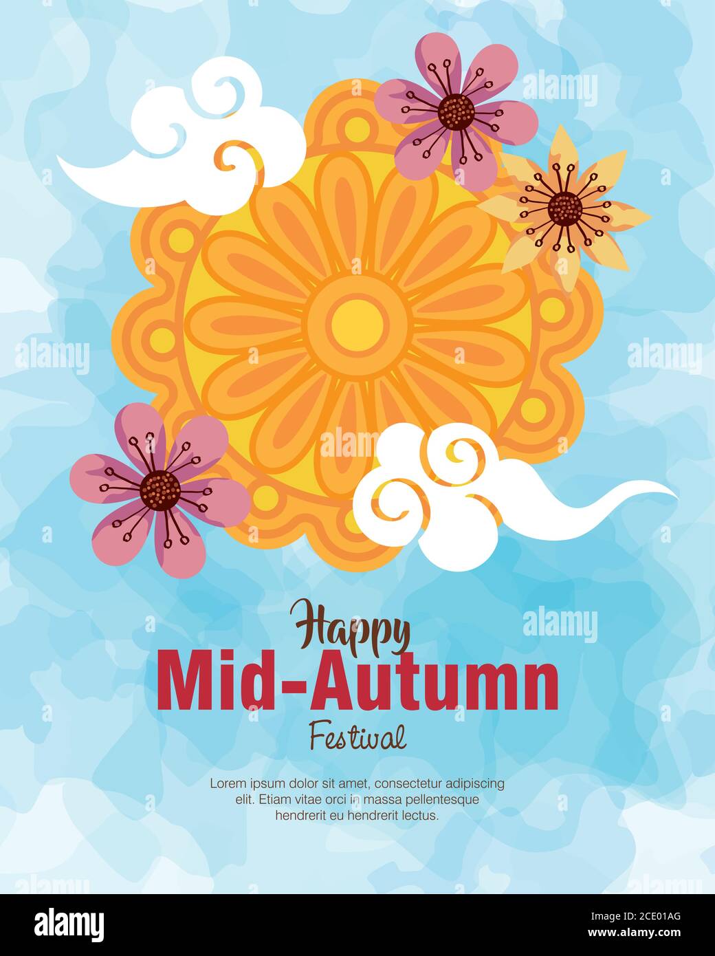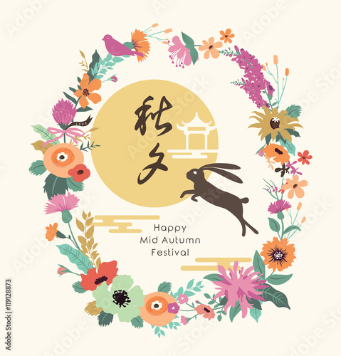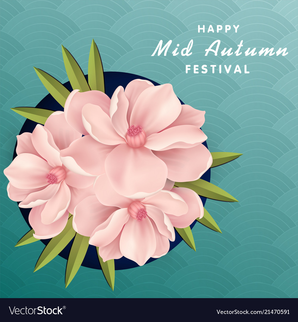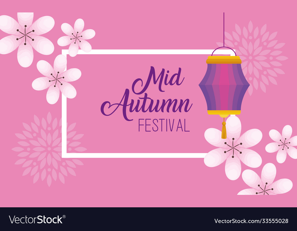 Chinese Mid Autumn Festival With Flowers And Vector Image
