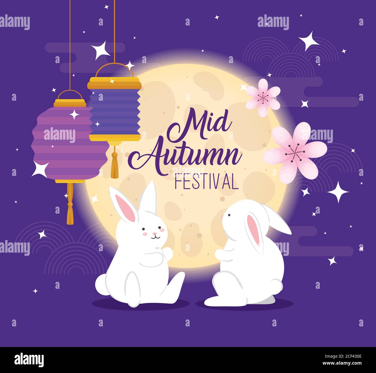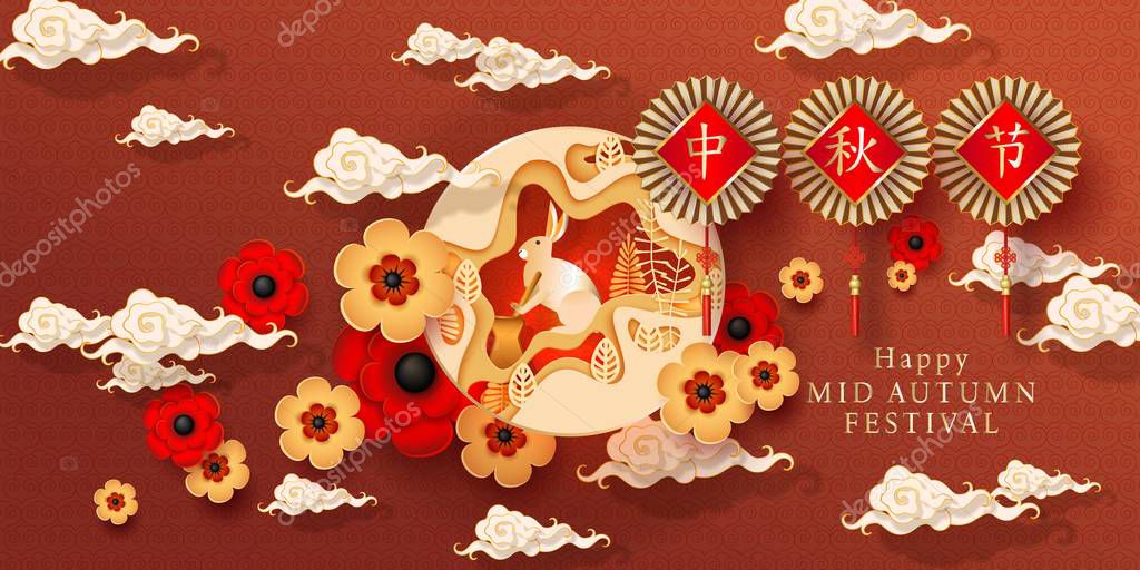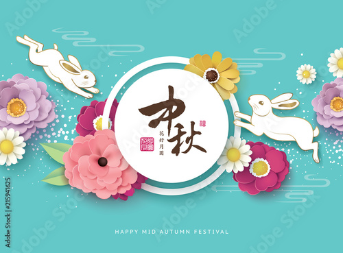 Mid Autumn Festival Poster Rabbits Flowers Stock Vector Royalty Free 1445918198