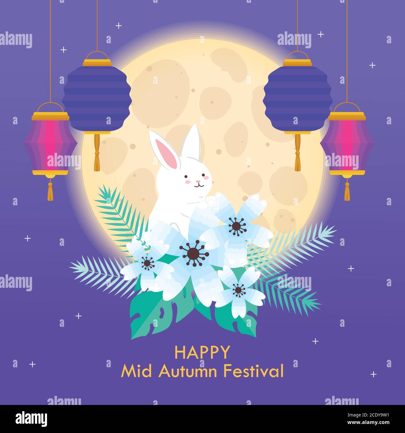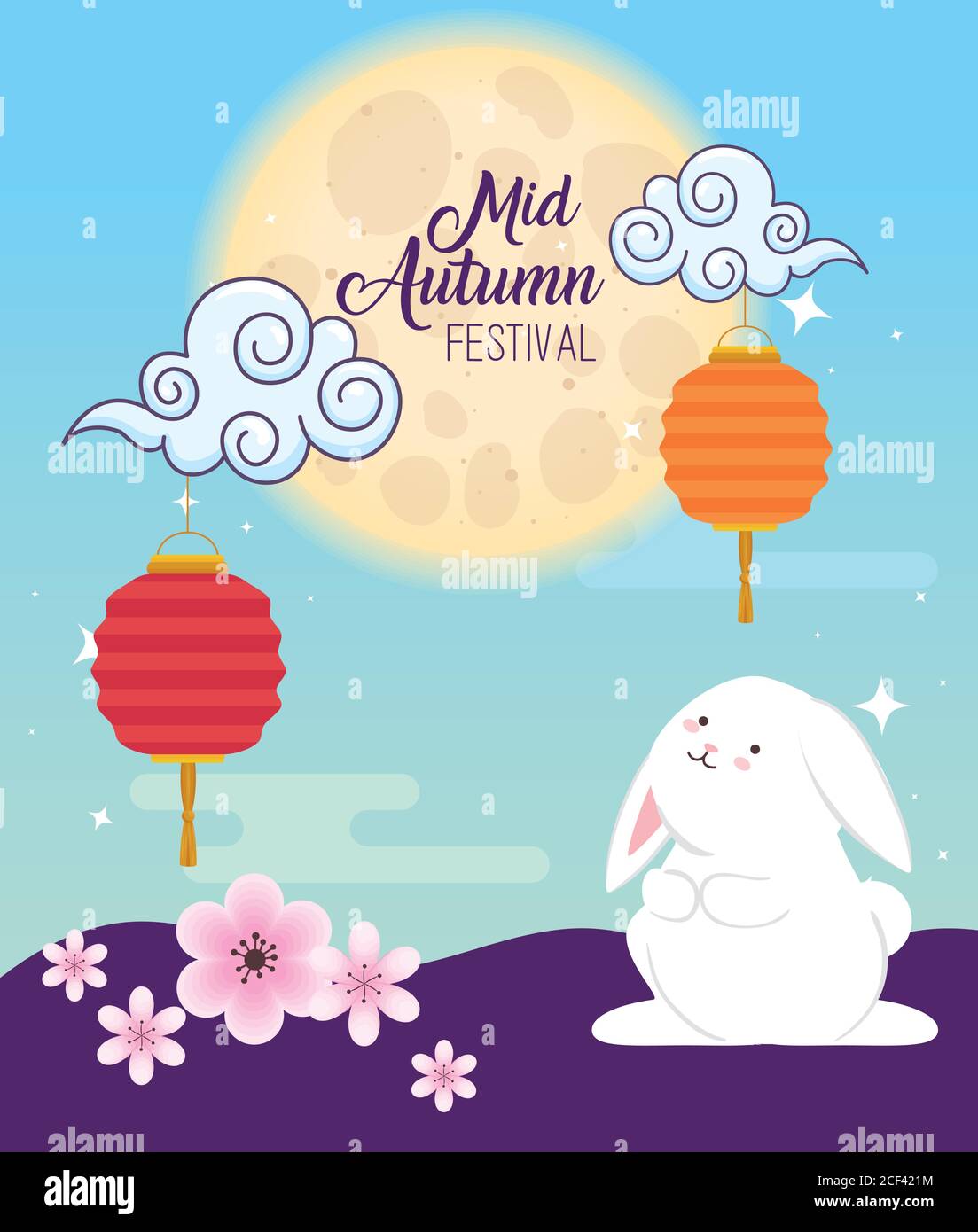 Free Vector Middle Autumn Festival Scene With Flowers And Lanterns