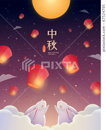 Happy Mid Autumn Festival Poster Vector Illustration Rabbits Holding Mooncake On Beautiful Night View Background Flyer Design Stock Illustration Download Image Now Istock