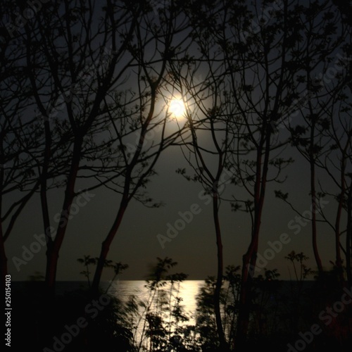 The Bright Moon On A Clear Night Outlines The Silhouette Of Trees At A Local Park By The Lakeside In Toronto Ontario Canada Buy This Stock Photo And Explore Similar Images