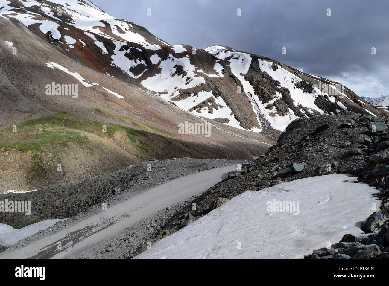 A Close Up Of Snow Capped Peaks Of The Himalayas While Going Towards Rohtang Pass From Manali Pine Trees Are Peeping Into The Landscape Stock Photo Alamy