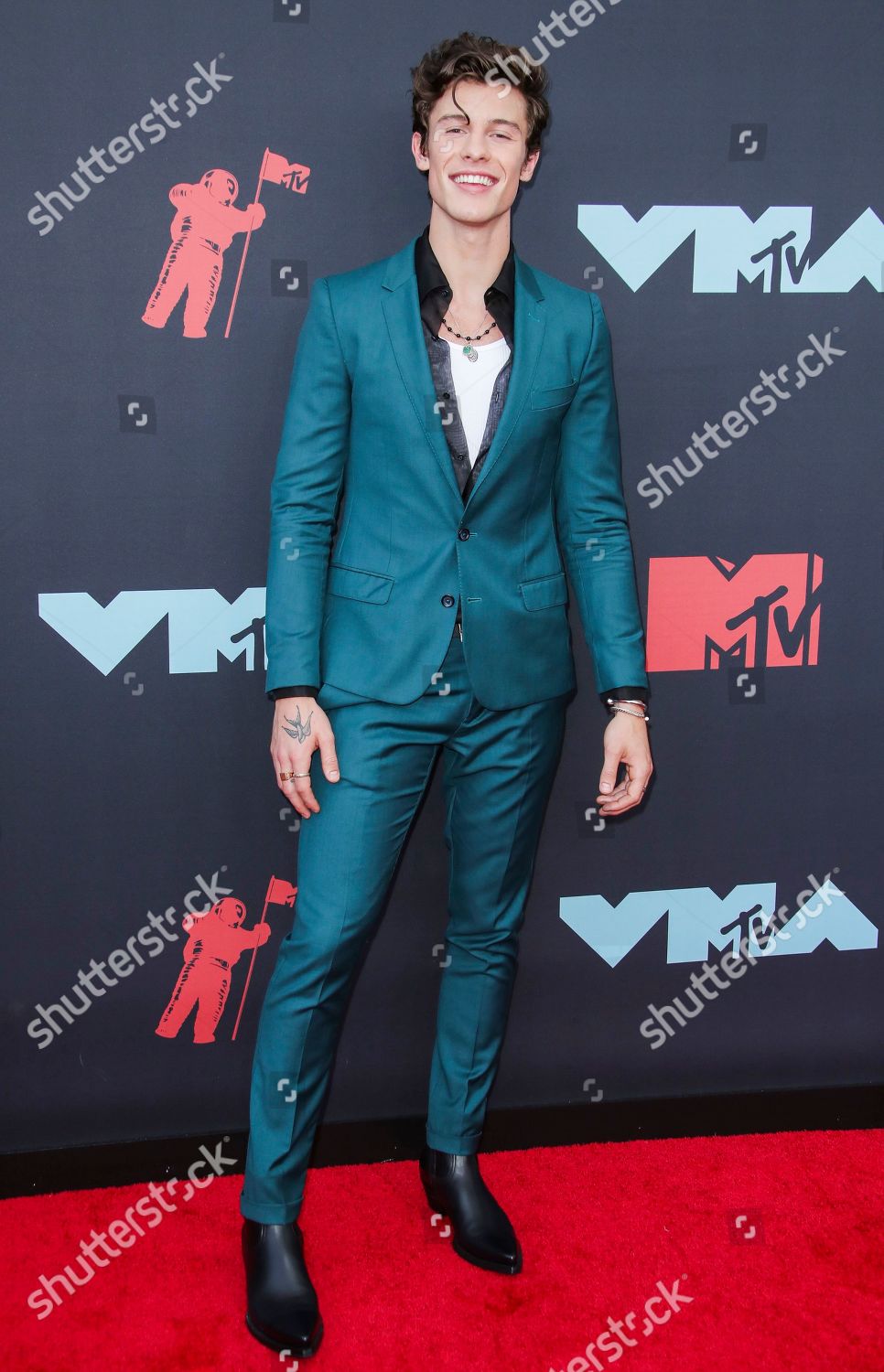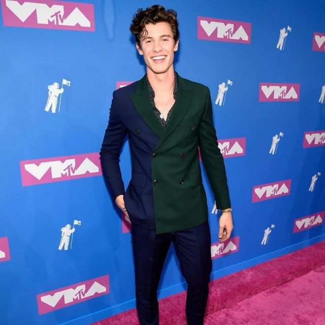 Shawn Mendes Green And Blue Navy Double Breasted Suit At The Mtv Video Music Awards 2018 Spotern