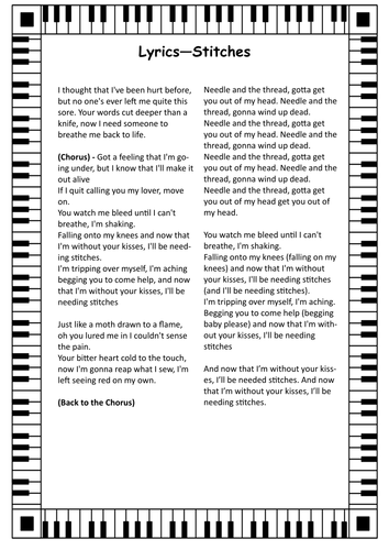 Stitches Shawn Mendes Ks3 Performance Guide Sheets Teaching Resources