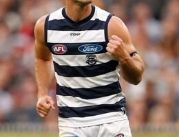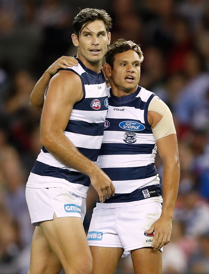 Afl 2019 Jordan Clark First Goal Video Tom Hawkins Hands Youngster The Footy Geelong Defeats Melbourne Fox Sports